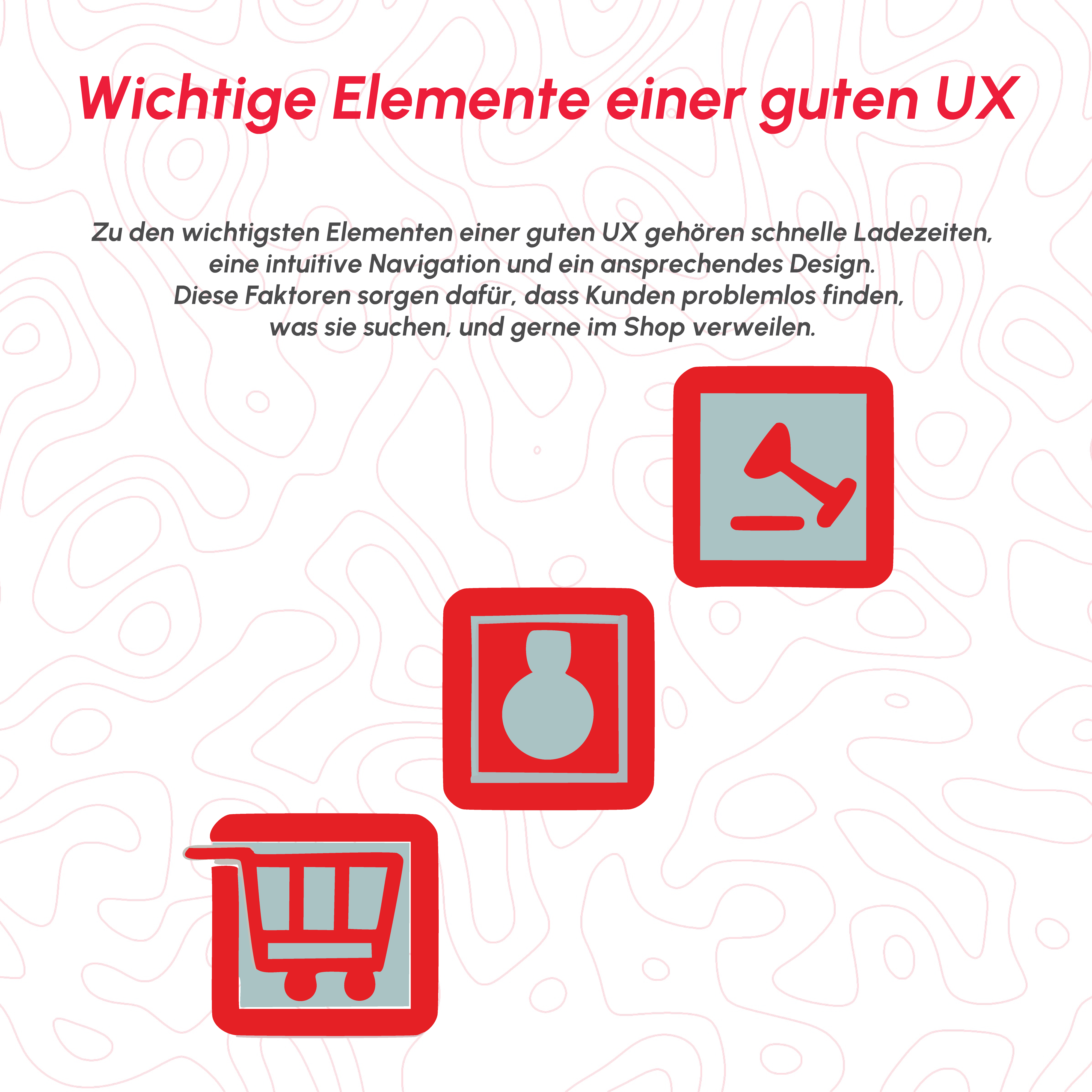 Zu den wichtigsten Elementen einer ausgezeichneten UX gehören schnelle Ladezeiten, eine intuitive Navigation und ein ansprechendes Design. Diese Faktoren sorgen dafür, dass Kunden problemlos finden, was sie suchen, und gerne im Shop verweilen.
