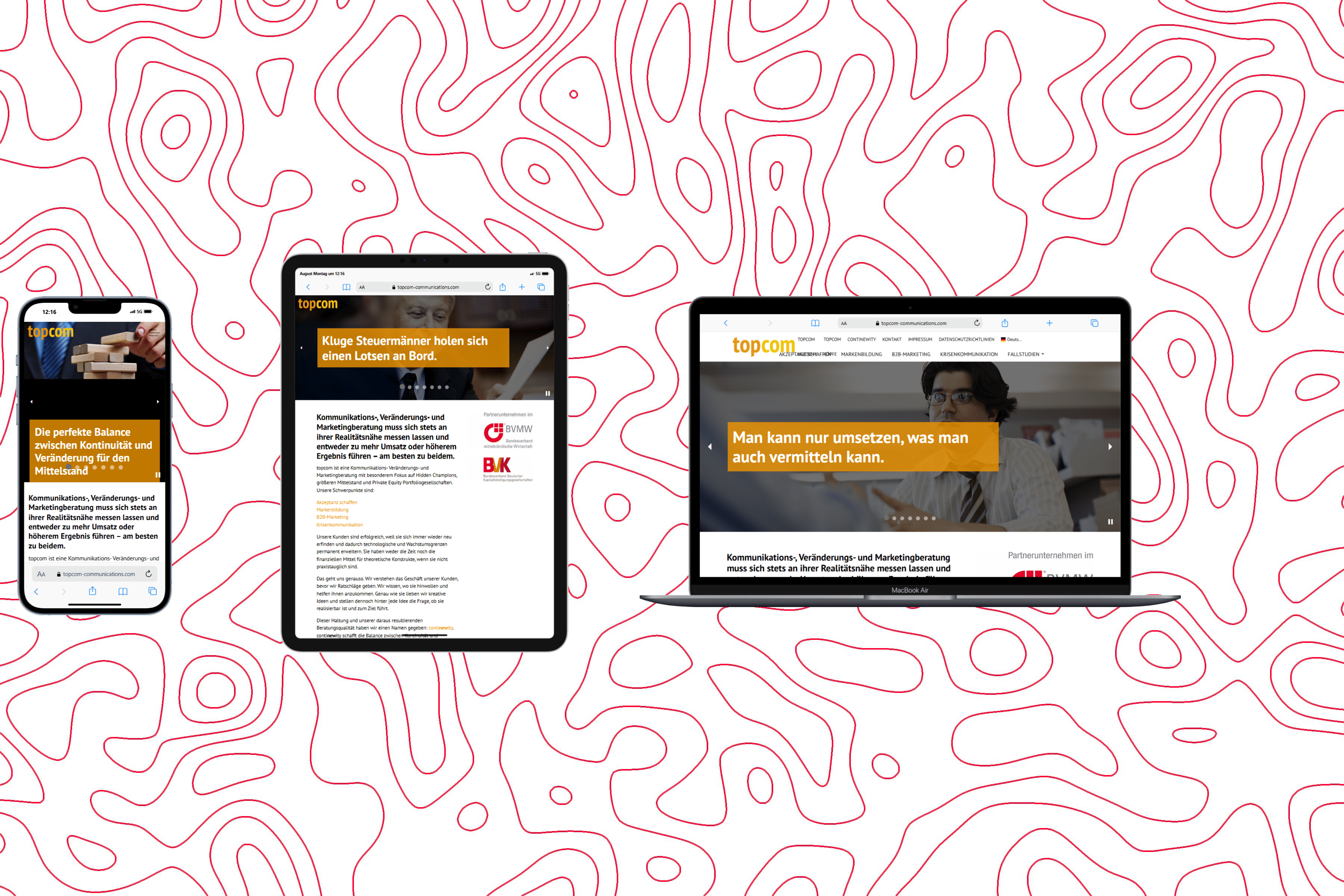 topcom ist die Kommunikations-, Change- und Marketingberatung für Hidden Champions, größeren Mittelstand und PE-Portfolios – gemessen an Umsatz und Ergebnis, nicht an Theorien. Mit continewity verbinden wir Kontinuität und Veränderung und schaffen Akzeptanz, starke Marken, wirksames B2B-Marketing und souveräne Krisenkommunikation.